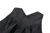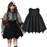 Enhance your gothic wardrobe with this bold black skirt, featuring a structured bodice and a full A-line shape. The asymmetrical hem adds a dramatic flair, perfect for a striking yet elegant look. Carefully crafted, this skirt blends gothic charm with a contemporary edge, making it a versatile piece for any standout outfit. Ideal for special events or elevating daily gothic style.