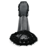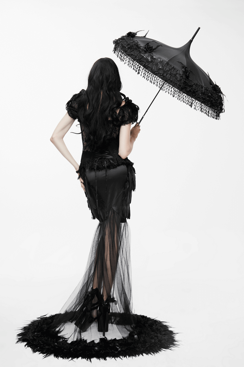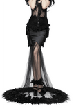 Women's Black Long Skirt with Flared Mesh from Knee to Hem – Gothic Style Apparel.