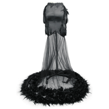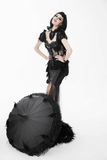 Check out this chic gothic-style women’s skirt. Made from sheer fabric, it adds a touch of lightness to your look, while the back zipper ensures easy wear. This black skirt is the perfect addition to your wardrobe.