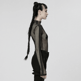 Sensual Punk Mesh Top - Fitted Gothic Net Blouse.