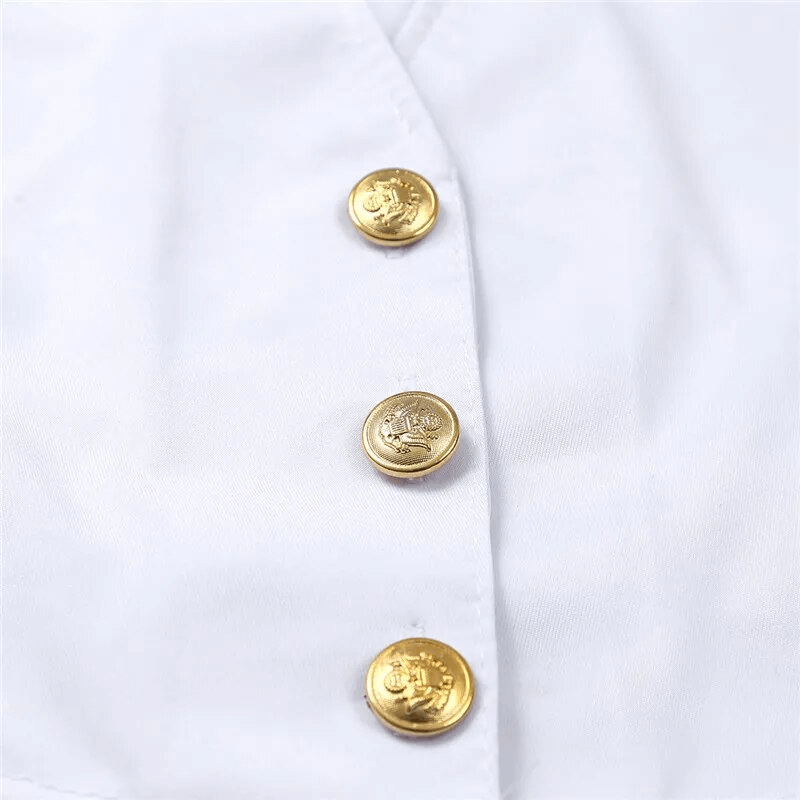 - Deep V-neck crop top, shoulder with epaulettes, front button closure for easy dressing.