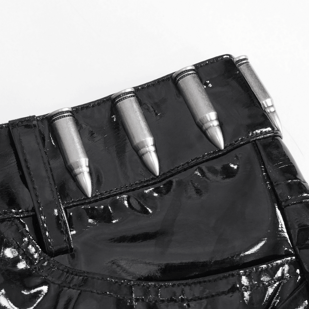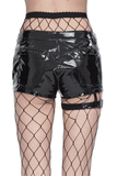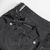 Glossy Punk Rock Shorts with Stylish Metal Details.