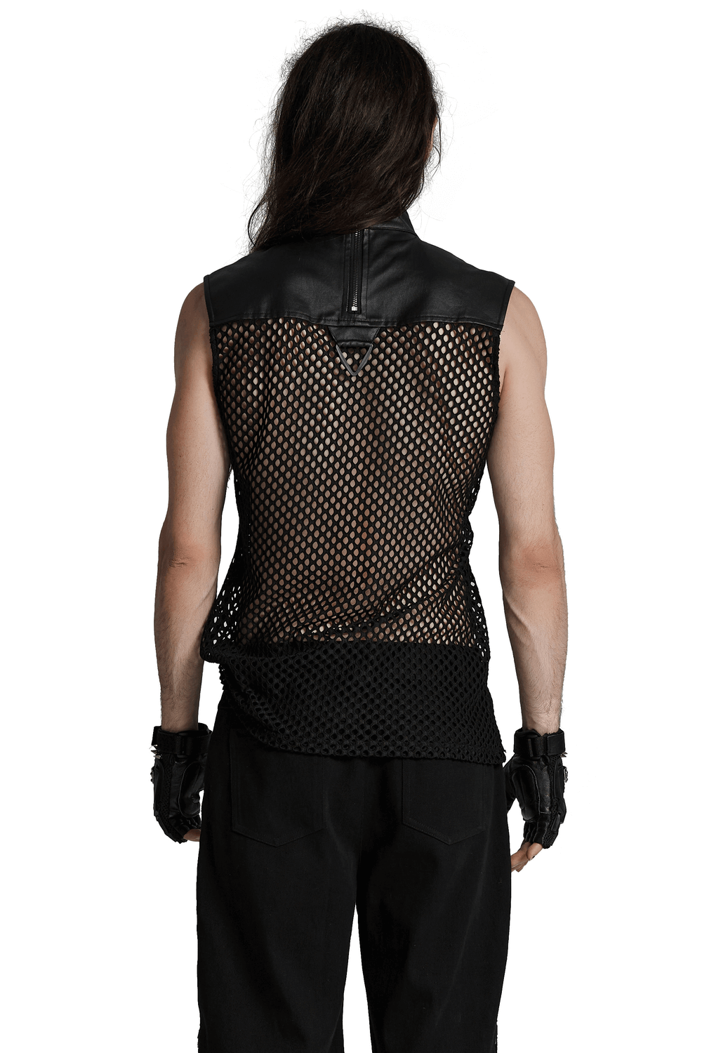 Sleeveless Punk Mesh Top with PU Leather Accents