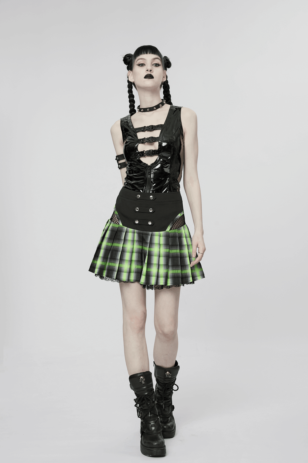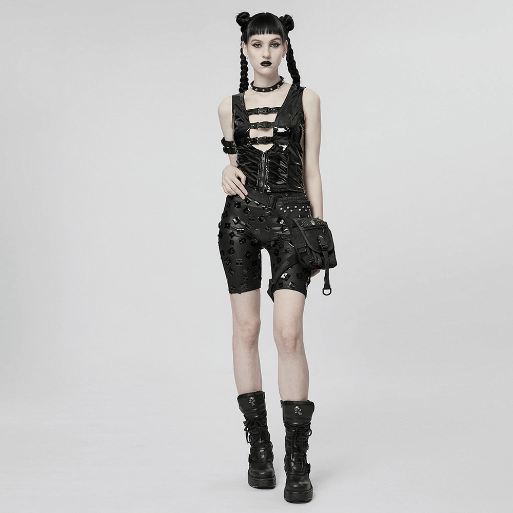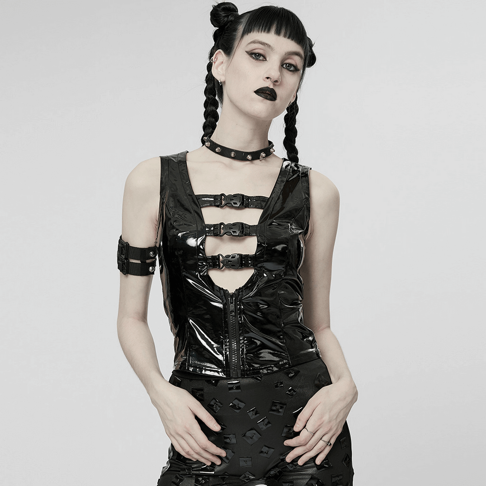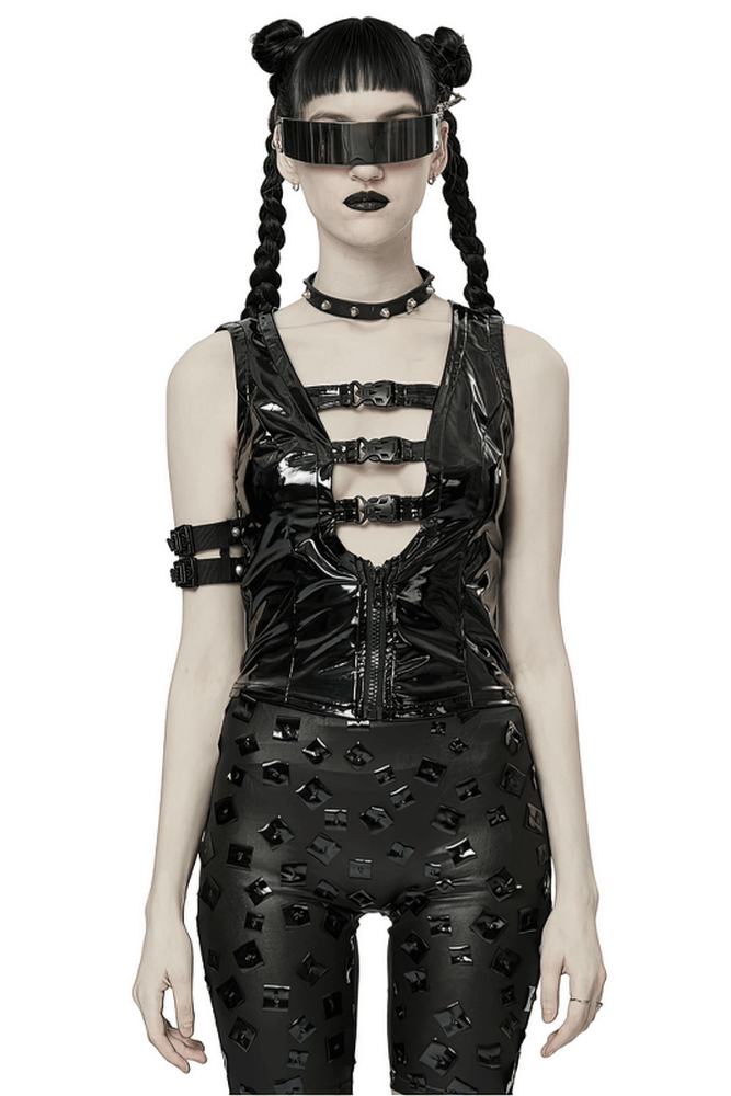 Slim Gothic Patent Leather Vest with Buckles Detail