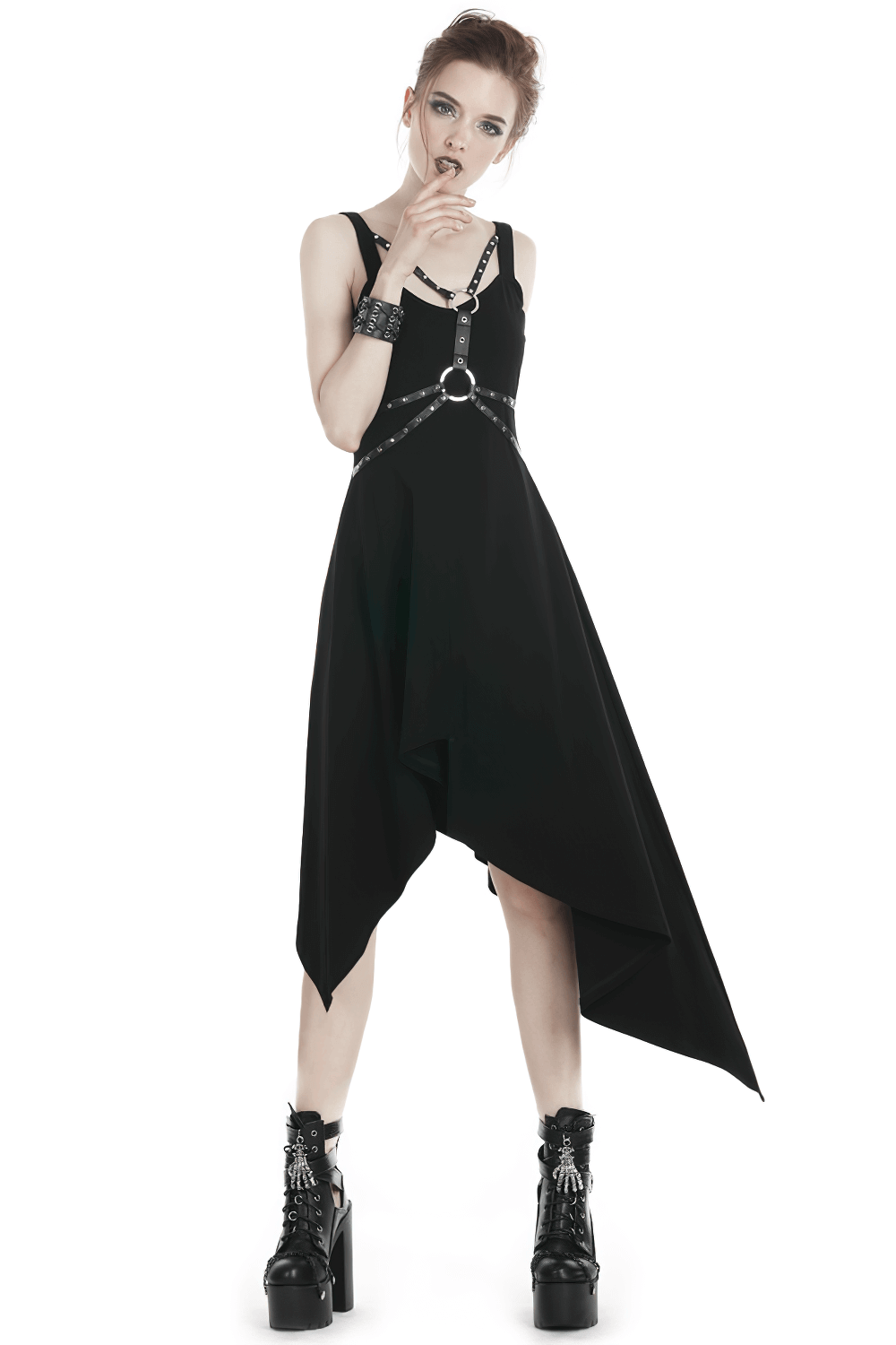 Stylish Asymmetrical Dress featuring Strap and Chain Decor