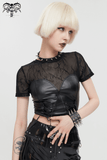 Sultry PU Leather Short-Sleeved Crop Top for Women