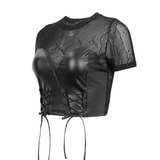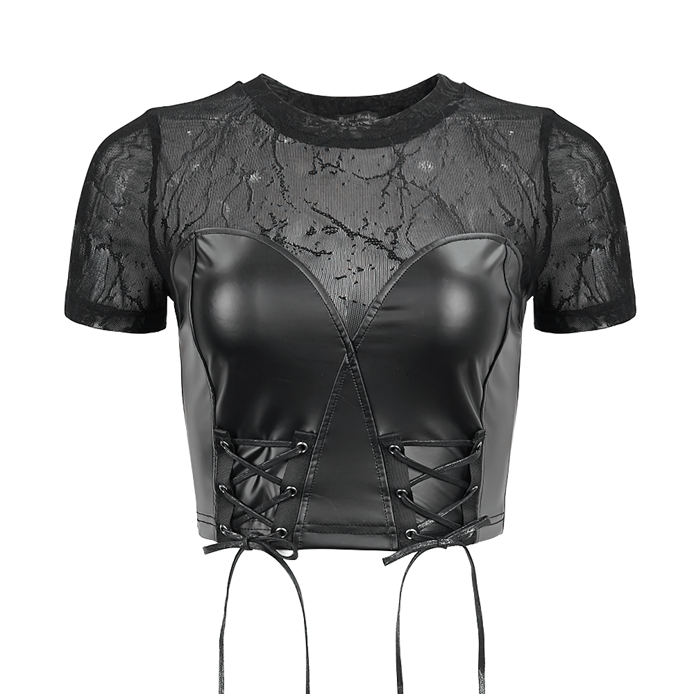 Women's Lace-Up PU Leather Crop Top - Stylish Punk Apparel.
