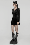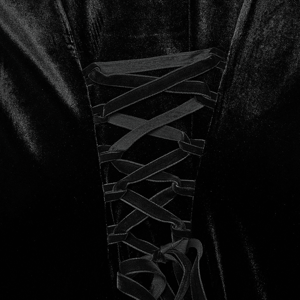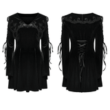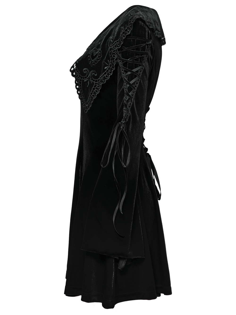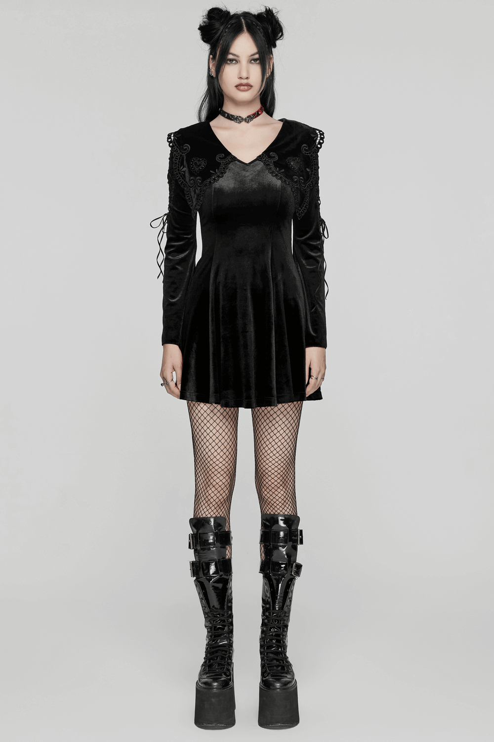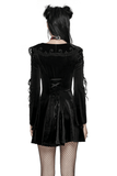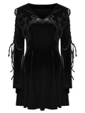 Velvet Lace-Up Dress with Intricate Gothic Applique Details