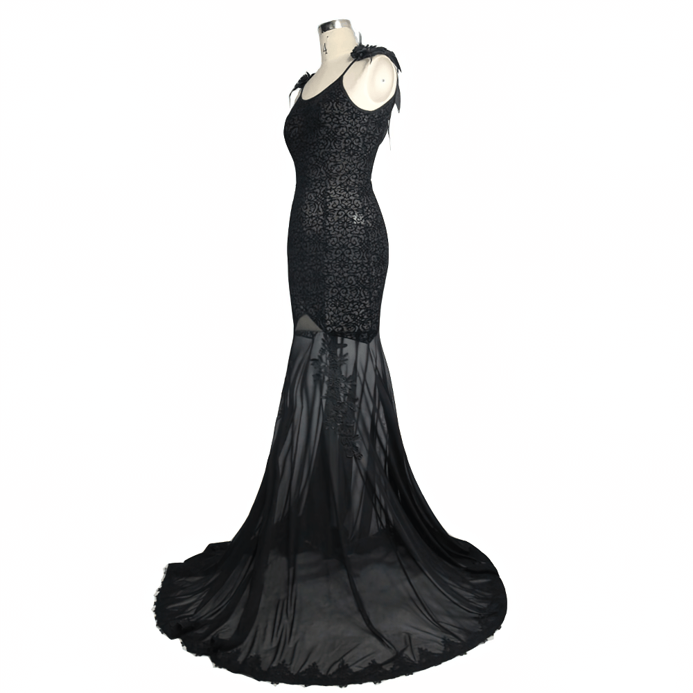 Discover our alluring gothic-style women’s dress that’s sure to captivate. This black dress features a sheer fabric for a light, ethereal touch and an elegant cut that beautifully highlights your figure. Select your size and add this stunning piece to your wardrobe.