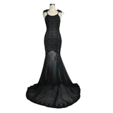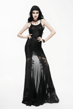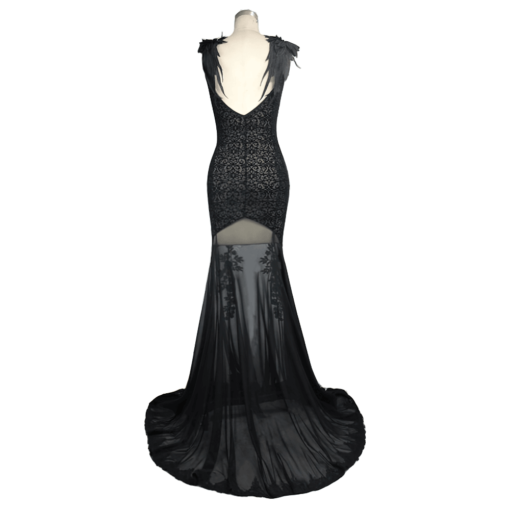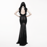 Women's Gothic Backless Long Dress with Sheer Bottom