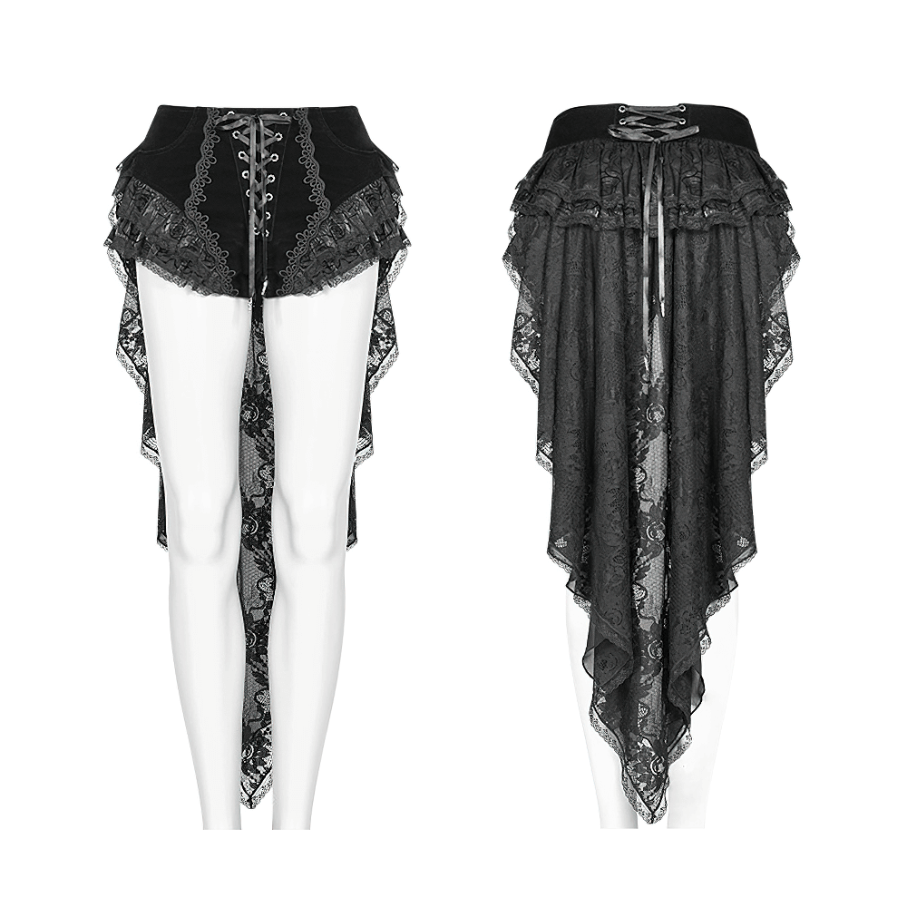 Women's Gothic Dress Shorts with Lace and Swallow Tail Hem