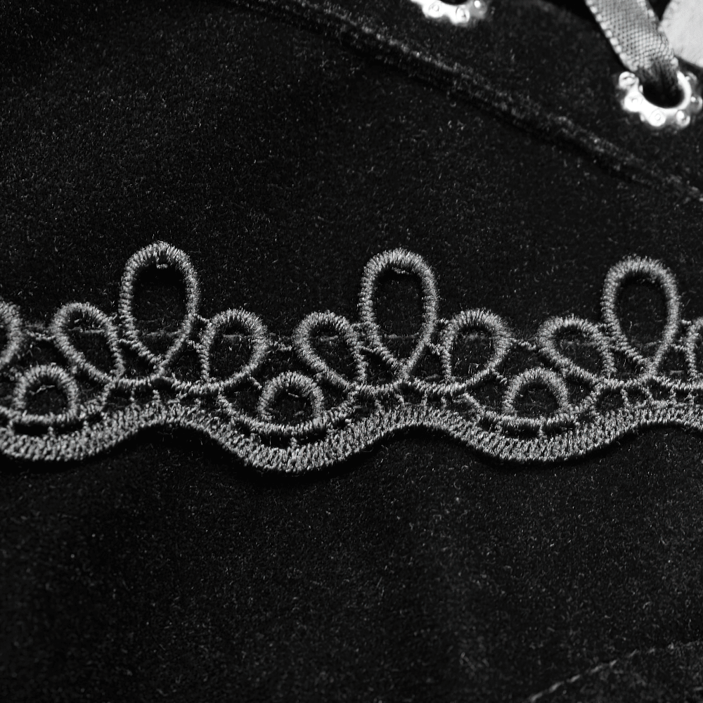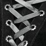 Uncover the bold elegance of these Gothic Swallow Tail Shorts, crafted from premium weft velveteen woven fabric. Featuring eyelet and lace-up accents at the front and back, they offer striking detail and texture. Retro lace at the rear adds a refined twist, perfect for standing out. Style them with a fitted top and boots for a head-turning gothic-inspired look.