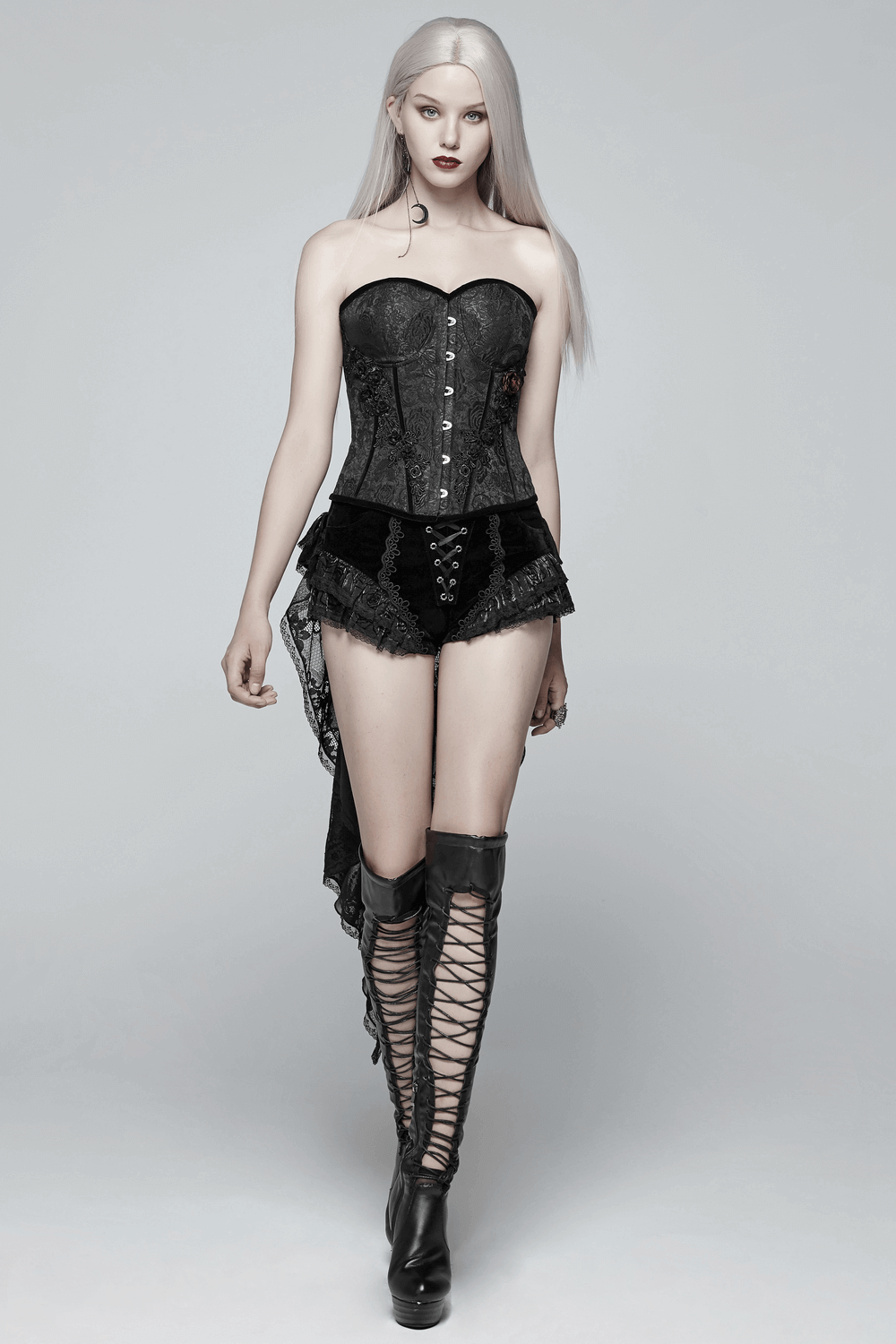 Women's Gothic Swallow Tail Shorts with Delicate Lace Trim