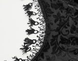 Enhance your gothic collection with this stunning black lace bolero. Featuring delicate floral lace, bold bell sleeves, and a Victorian design, this capelet brings elegance and allure to any ensemble. The open back and intricate details make it ideal for formal affairs or gothic-themed gatherings. Pair it with corsets, dresses, or gowns for a striking, dramatic look.