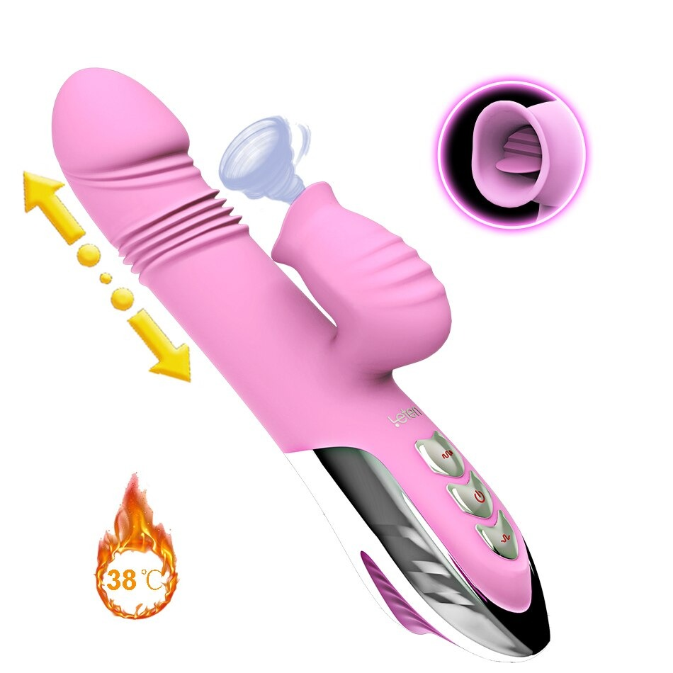 Dildo-Vibrator mit Mundsaug-/Stoß-Klitoris-Stimulator mit Heizfunktion