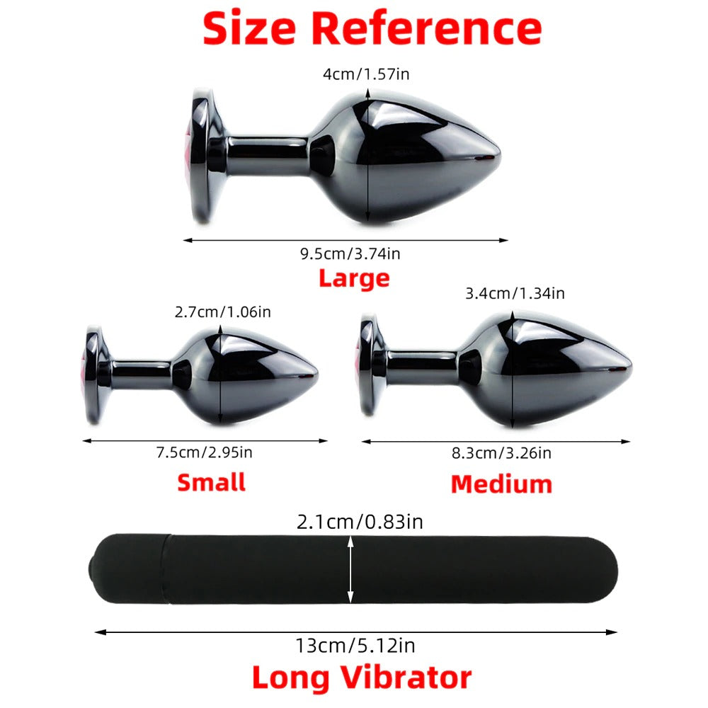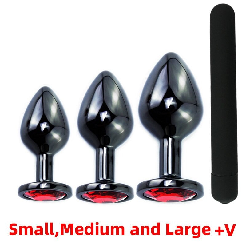 Schwarzer Gun Metal runder roter Kristall Riesiger Analplug / Prostatamassage für Männer und Frauen