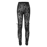 Schauen Sie sich dieses stilvolle Modell einer Damenleggings im Gothic-Stil an. Diese schwarzen Leggings bestehen aus transparentem Stoff und haben Spitzeneinsätze, die Ihrem Look Verführung verleihen, sowie seitliche Bänder als Verzierung. Mit dieser Leggings lassen sich viele Gothic-Outfits kreieren.