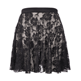 Damen-Minirock aus transparenter Blumenspitze mit Rosen / schwarze einlagige Röcke mit elastischer Taille