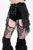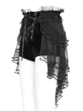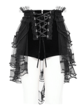 Gothic Lace-Up Shorts with Ruffled Tulle and Bold Tie Detail