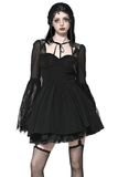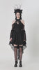 This bold gothic lace dress blends detailed lace with daring cutouts. The heart-shaped accents on the bust and ruffled edges add romance, while the open-shoulder and lace-up back create a striking look. Its high-low hemline offers elegance, making it perfect for gothic events and alternative fashion enthusiasts.