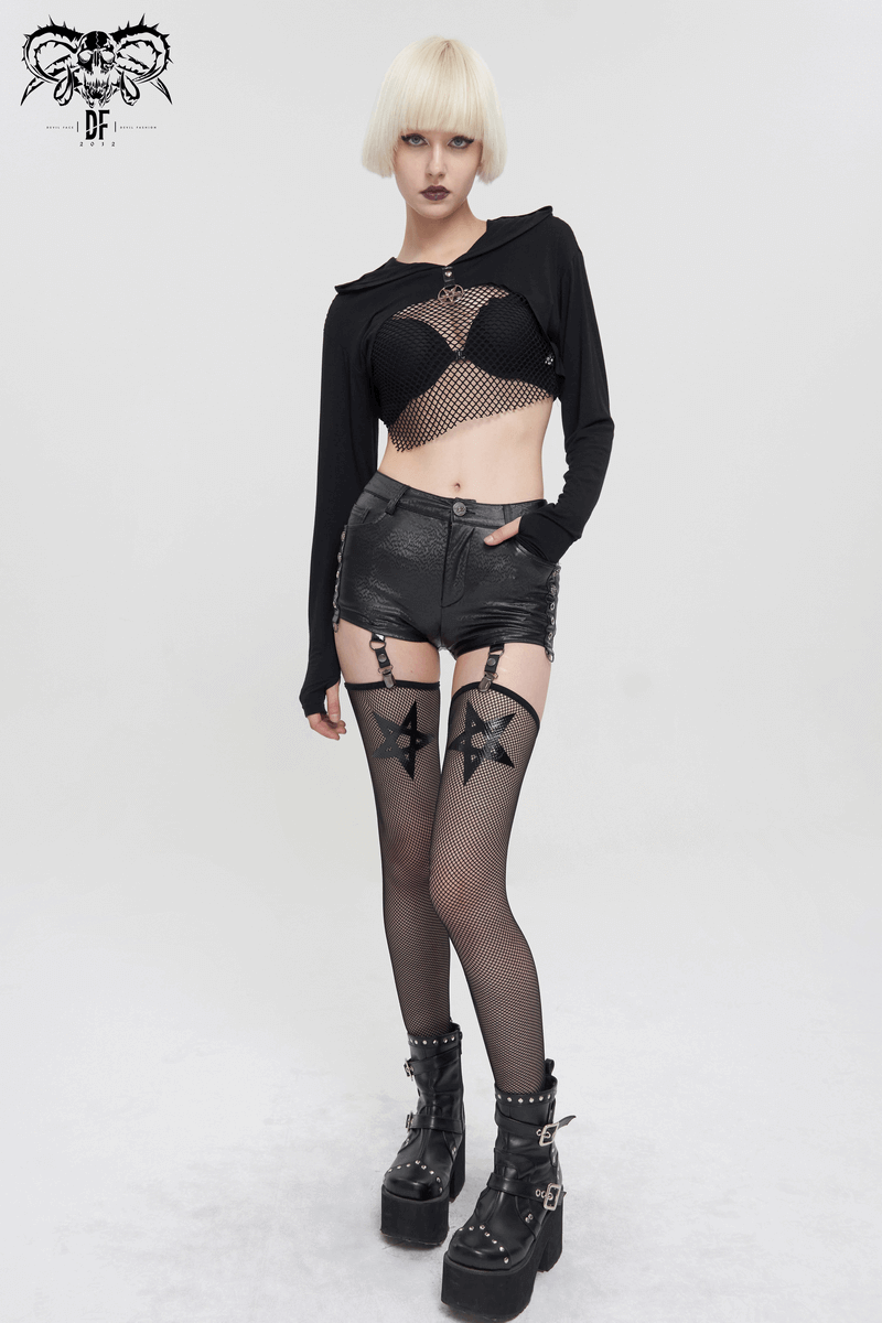 Sexy transparentes Top mit Schnürung am Rücken für Damen / Gothic-Langarm-Top mit Pentagramm