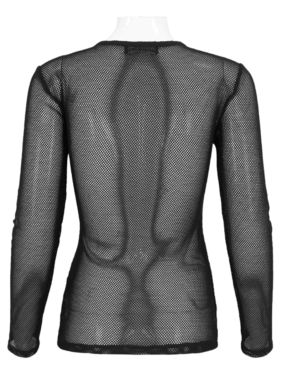 Schwarzes, langärmliges, durchsichtiges Mesh-Top für Damen / Sexy Damenbekleidung im Gothic-Stil