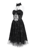 Gothic Halter Lace Dress with Ribcage Print and Choker