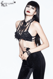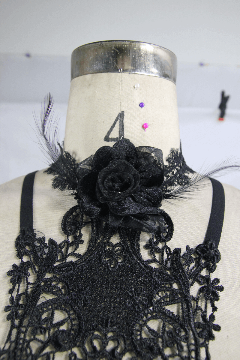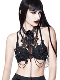 Damen-Spitzengeschirr mit 3D-Blumen / Gothic-Brustgurt mit abnehmbaren Glasdiamanten