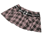 Pleated Plaid Mini Skirt with Edgy Studded Waist Belt