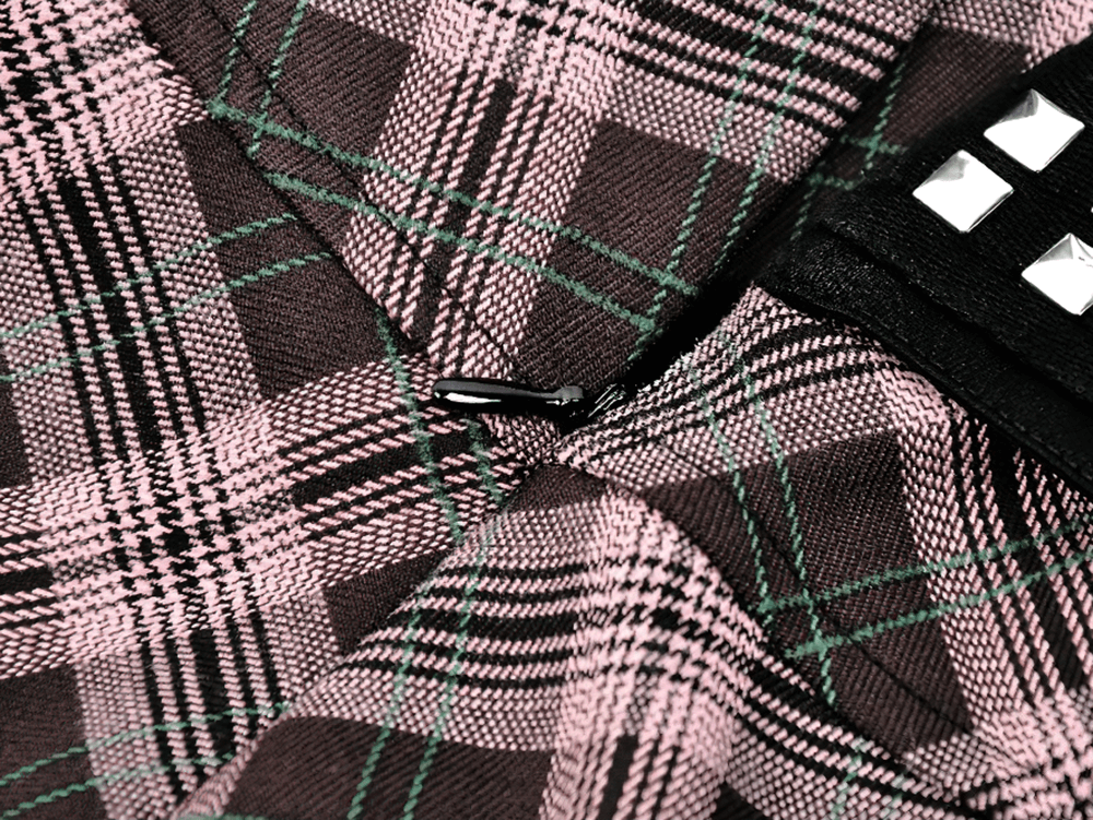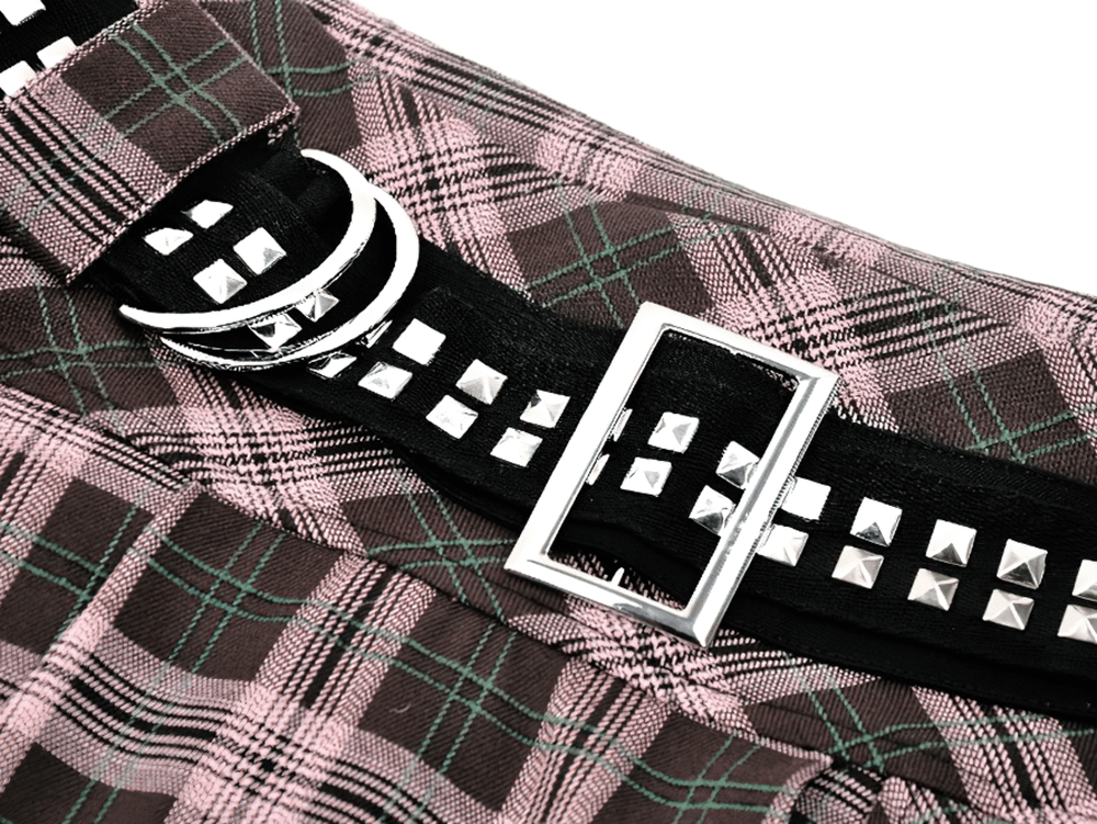 Stylish Plaid Skirt with Studded Belt for Bold Looks