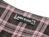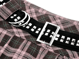 This mini plaid skirt showcases a chic pleated cut and a studded belt, making it a standout piece for trendy, bold styles. With a flattering fitted waist, it hugs your shape perfectly, while the mix of black, pink, and green adds a retro-inspired flair. Great for casual days or giving your outfit a punk twist, this skirt blends edgy appeal with everyday versatility.
