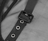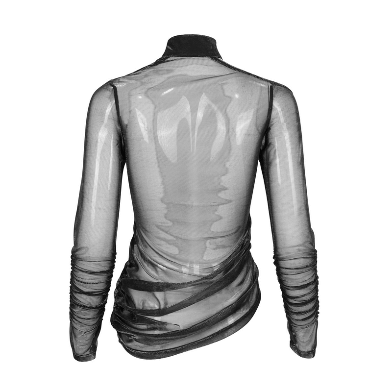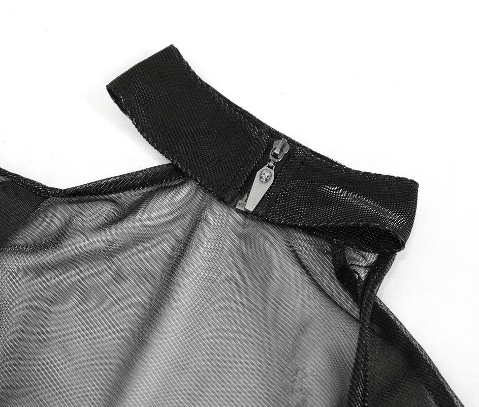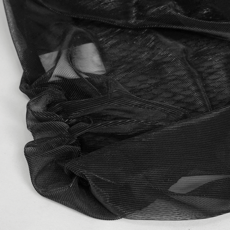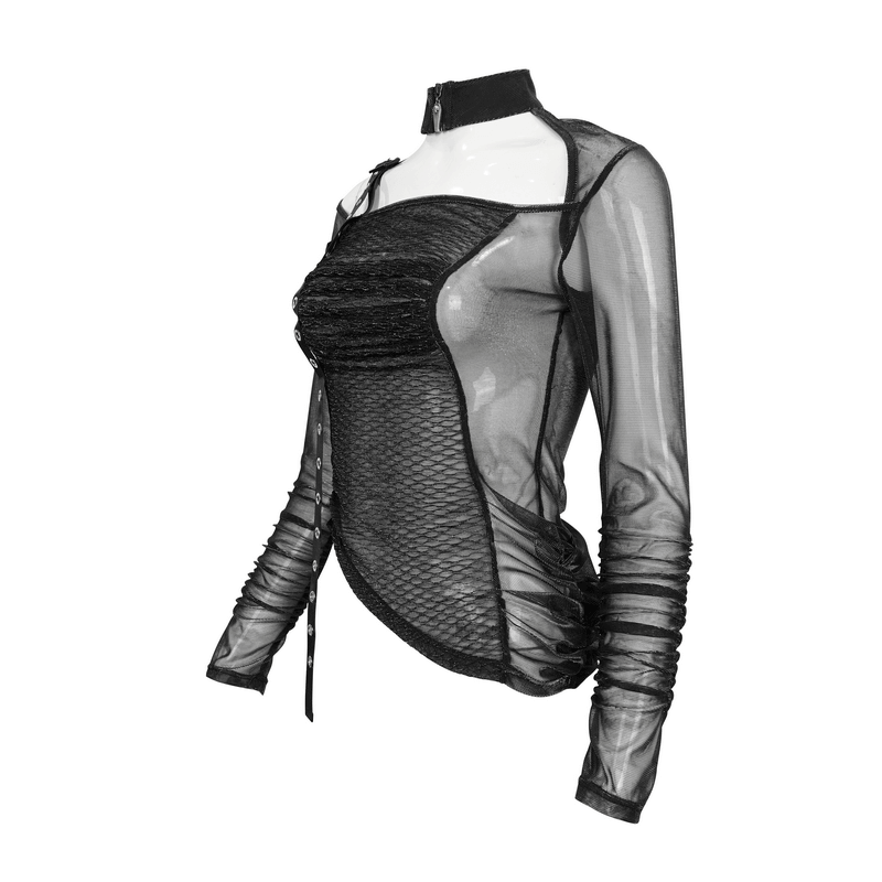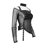 Sexy Gothic-Top mit Ausschnitten und transparentem Oberteil / modisches schwarzes Top mit Ösenband an einer Schulter