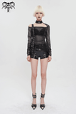 An diesem stylischen Modell eines schwarzen Tops im Gothic-Stil werden Sie nicht vorbeikommen. Dieses schwarze Oberteil hat einen One-Shoulder-Schnitt, der Ihre Figur bestmöglich betont, und verfügt außerdem über ein modernes Design, das alle Blicke auf sich zieht. Wählen Sie also Ihre Größe und bestellen Sie dieses schwarze Top für Ihre Gothic-Garderobe.