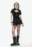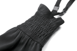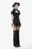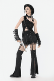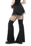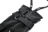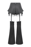 These striking gothic shorts blend lace-up fit, mesh accents, and removable flared leg covers. With layered panels, zip accents, and metal eyelets, the design delivers a modular, rebellious vibe. Adjustable straps let you switch between bold shorts or statement pants. A perfect choice for goth, punk, and cyber-inspired alternative streetwear.