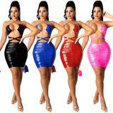 Damen Sexy Wet-Look, figurbetontes Kleid mit Neckholder / erotische Cut-Out-Outfits für Frauen
