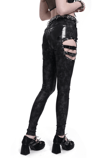 Stylish Gothic Pants with Buckle Accents for Bold Looks Embrace your bold side with our Chic Gothic Pants, crafted with sleek side buckles and glossy leather pockets for a daring appeal. These pants merge distinctive style with utility, showcasing a...