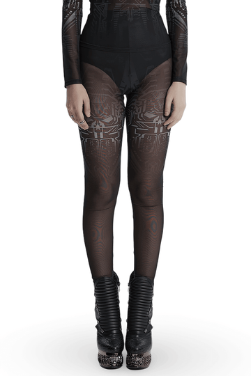 Cyberpunk Gradient Print Leggings with Skull Mesh Detailing
