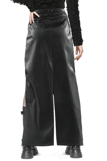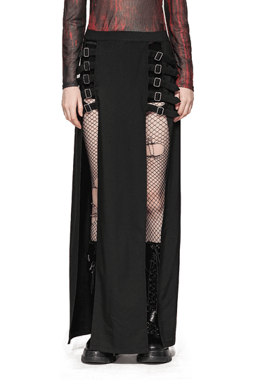 Gothic Maxi Skirt with Side Slits and Buckle Straps