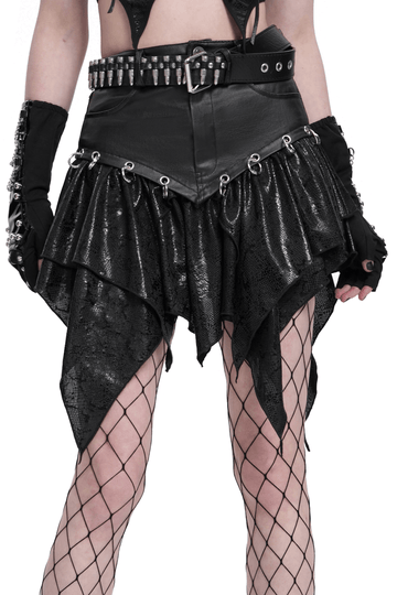 High-Waisted Mini Skirt with Edgy Rings and Uneven Hem