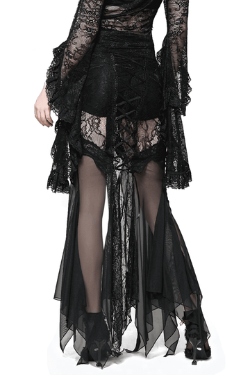 Lace Gothic Skirt with High-Low Hem and Sheer Mesh