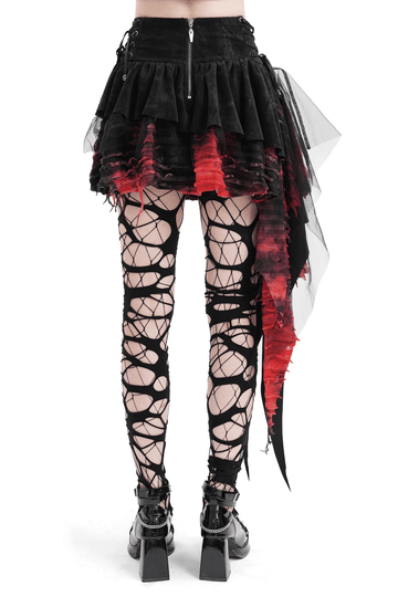 Bold Layered Gothic Skirt in Black and Red for Alt Fashion.  Embrace your dark side with this tiered asymmetrical gothic skirt, mixing bold red with classic black. Adorned with lace, flowing tulle, and adjustable lacing for a custom fit, it...