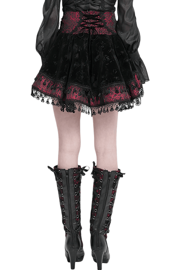 Velvet Gothic Lace-Up Skirt with Cross Embroidery Detail