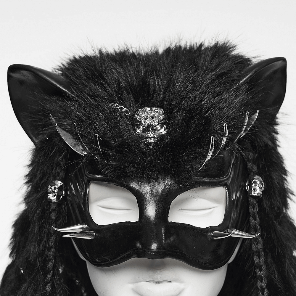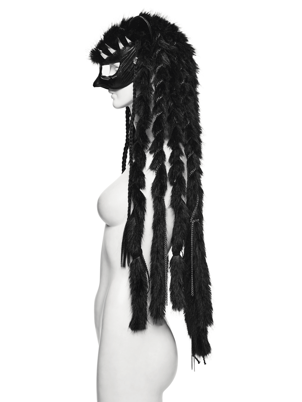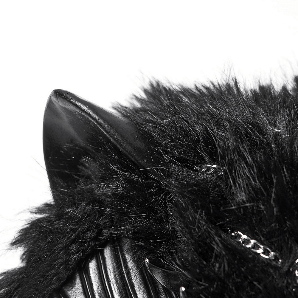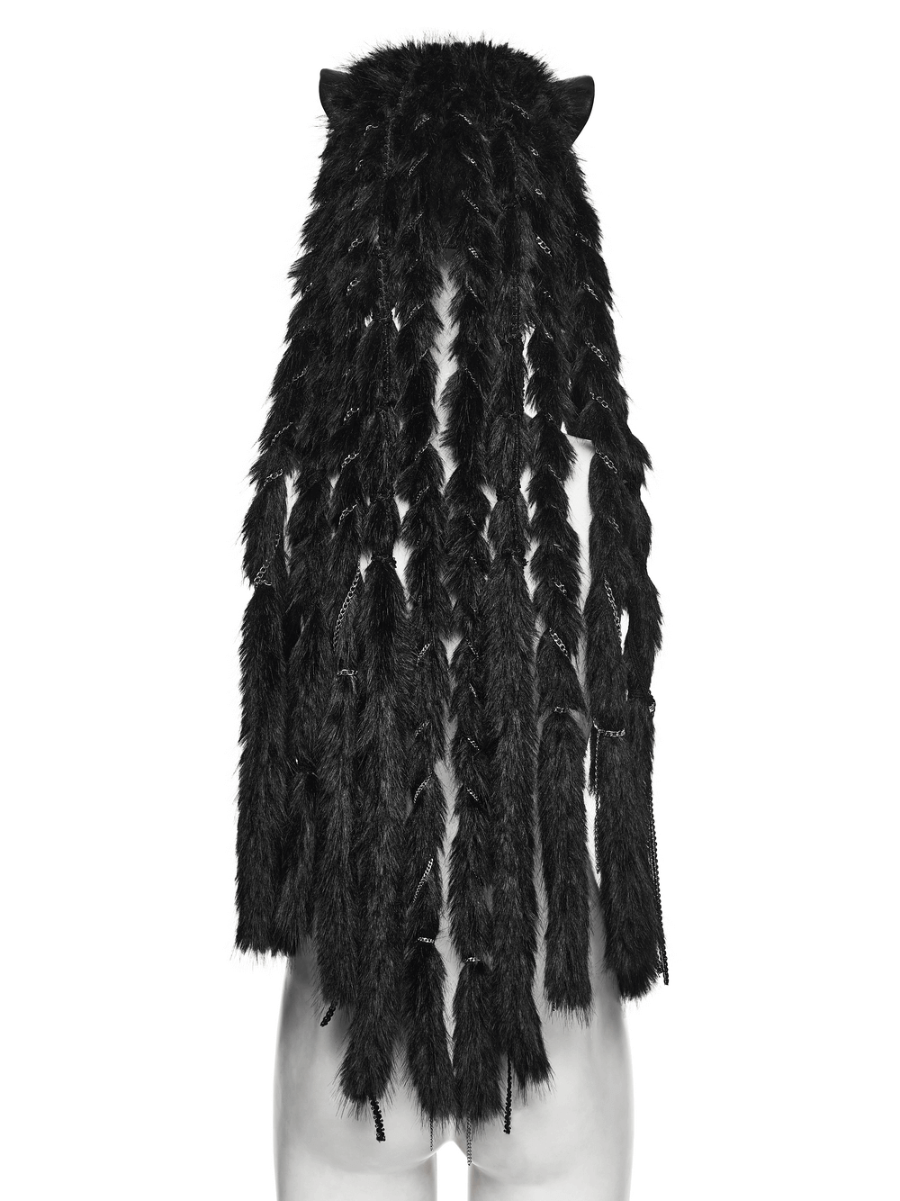 Channel your untamed energy with this gothic fox hood mask crafted from eco-friendly plush, latex, and metal rivets. The bionic fox design radiates rebellious allure, while braided plush strands entwined with chains add fierce texture. Rivet embellishments and exaggerated detailing evoke a dramatic punk essence-perfect for those who crave bold, avant-garde gothic fashion statements.