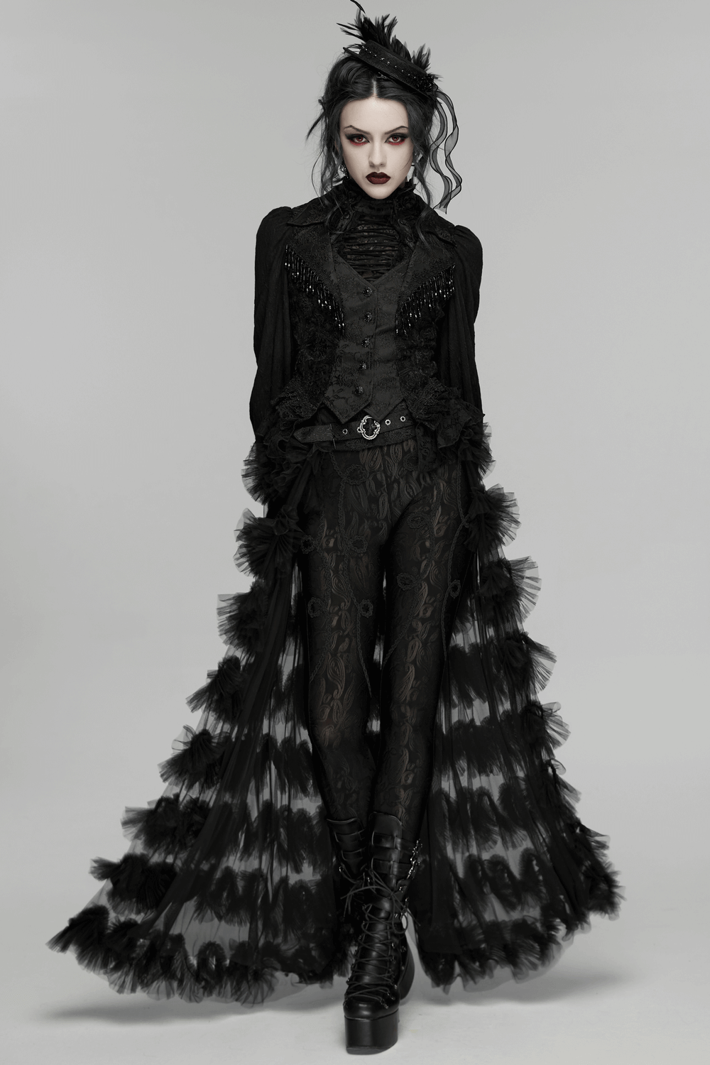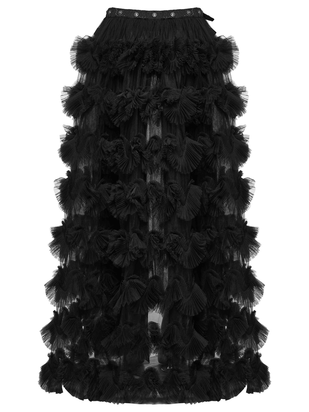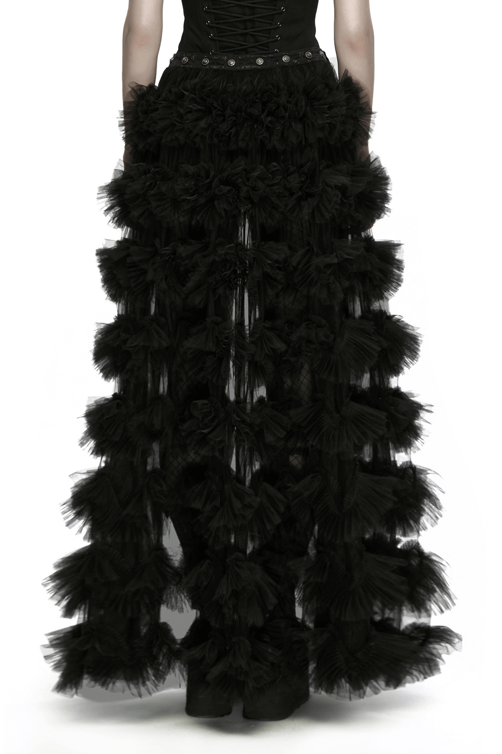 Gothic Sheer Mesh Tiered Maxi Skirt with Layers