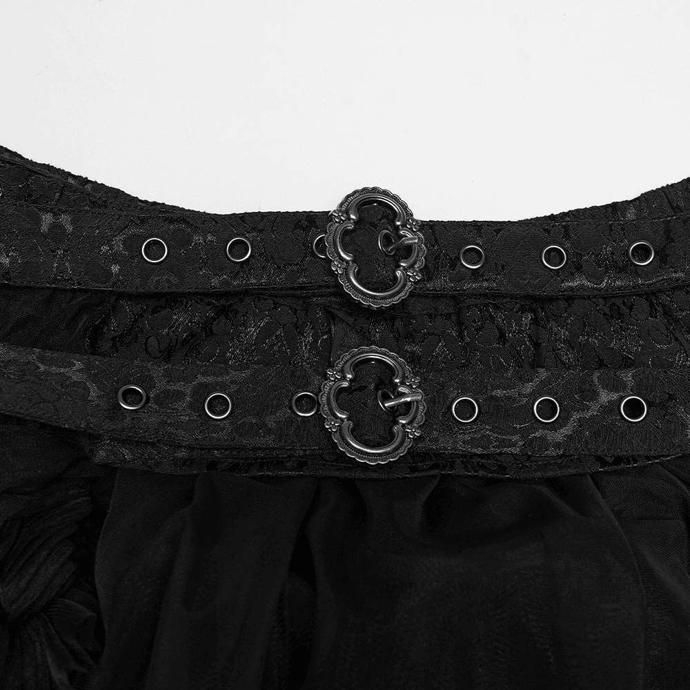 Goth Layered Skirt with Wave Hem and Jacquard Weave.
