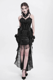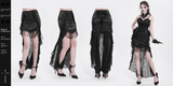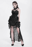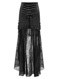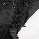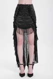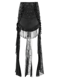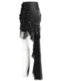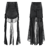 Black Gothic Skirt with Lace-Up Fringe and Floral Stitching