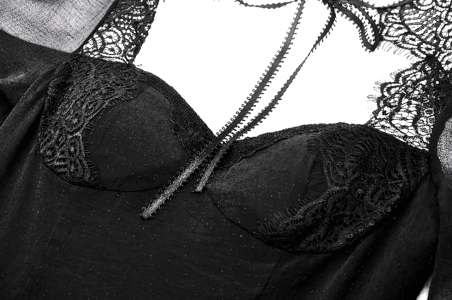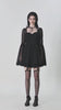 Elegant Black Mesh Empire Dress with Lace Details and Tie Neck