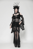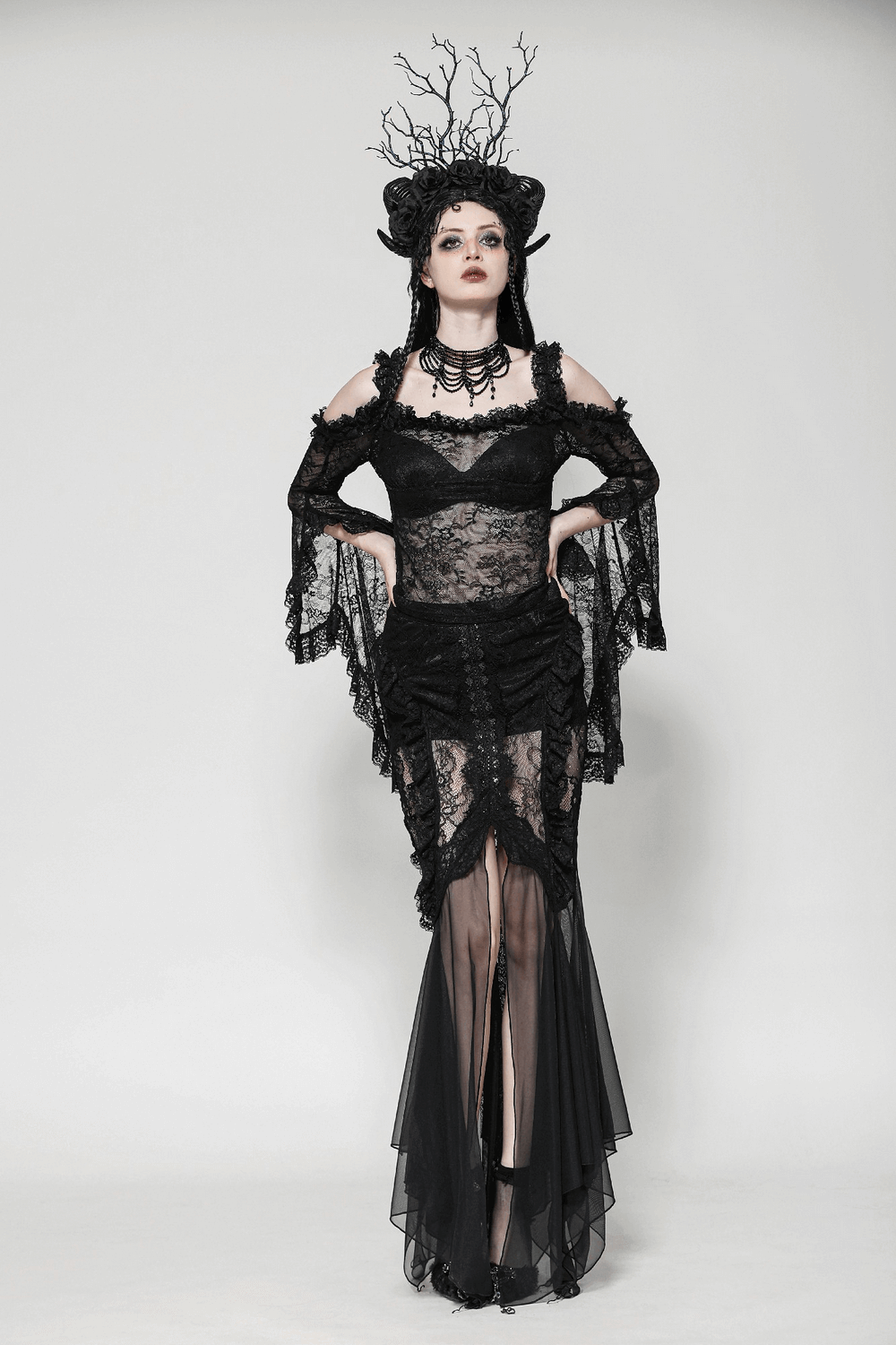 Off-Shoulder Lace Top with Flowing Sleeves in Dark Style