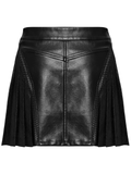 Punk Black Pleated Skirt in PU Leather with Zipper Accents