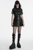Made from PU leather, cracked leather, and mesh, this punk-style pleated skirt stands out with bold metal zippers on each side. Its unique cut highlights the legs, while side mesh inserts enhance curves with a daring twist. A fierce blend of edge and flair, this skirt is the perfect statement piece for bold wardrobes craving attitude and style.